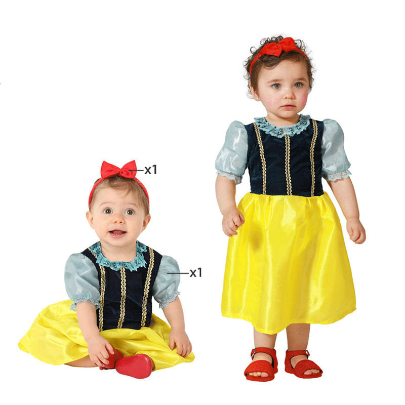 Un diseño muy cuidado para obtener una Princesa de las nieves bebé original y a la misma vez, clásica. Un vestido muy cómodo para vestir y desvestir a nuestra pequeña princesa. Unos colores vivos y llamativos, para recrear a la princesa Disney por excelencia, Blancanieves.