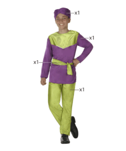 Disfraz de paje infantil que incluye camisa, pantalón, cinturón y gorro. Si tu peque tiene que disfrazarse para la época mas dulce del año, la Navidad. Aquí tienes este precioso y cómodo disfraz de paje, le quedará genial. Disponible en tres colores.
