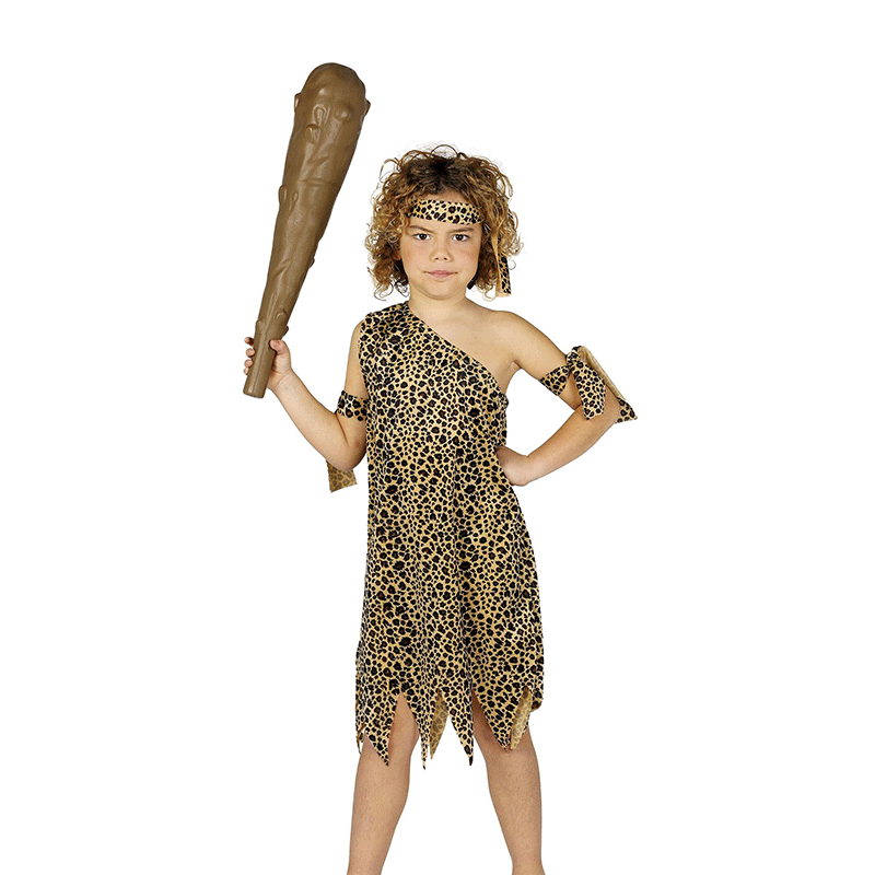 Disfraz de Troglodita de niño, que contiene vestido, cinta para la cabeza, cintas para los brazos y cinturón. Complementos no incluidos. Perfecto para tu peque, le quedará genial.