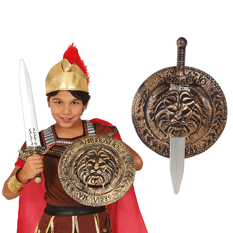 Escudo de 31 cm con espada de 48 cm infantil. Si a tu peque le gusta disfrazarse de la época medieval, este es el complemento perfecto que puedes añadir a su disfraz. Se créera que esta en una película medieval y lo pasara genial.