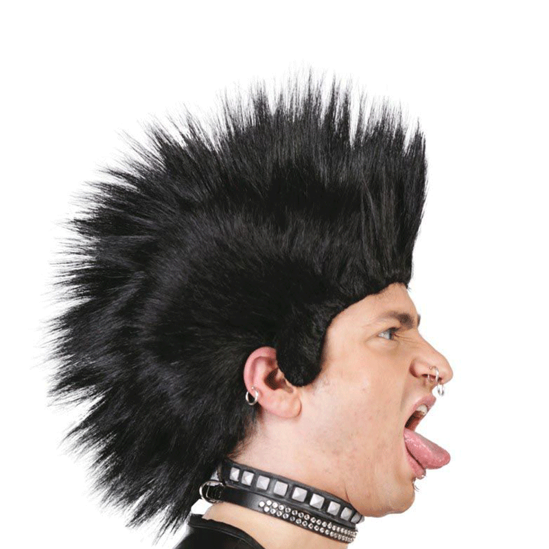 Peluca Punky para adultos, en color negro. Si te apetece disfrazarte de punky coge un disfraz y complementalo con esta preciosa peluca, te quedara genial. Puedes añadir también de nuestra sección de complementos un collar punky, lo bordaras.