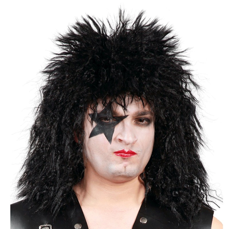 Peluca Rockera de color negro, para hombre. El complemento perfecto para tu disfraz roquero, quedará muy original.