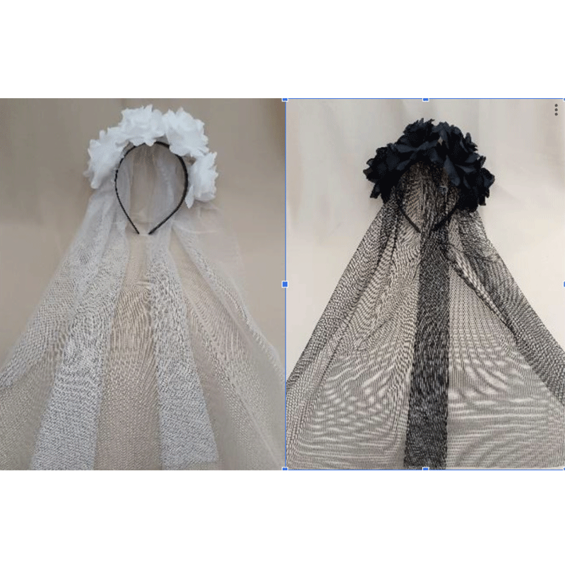 Velo de novia en color negro o blanco. Velo con diadema y flores, perfecto para una despedida de soltera. Colocaselo a la novia y le quedará genial.